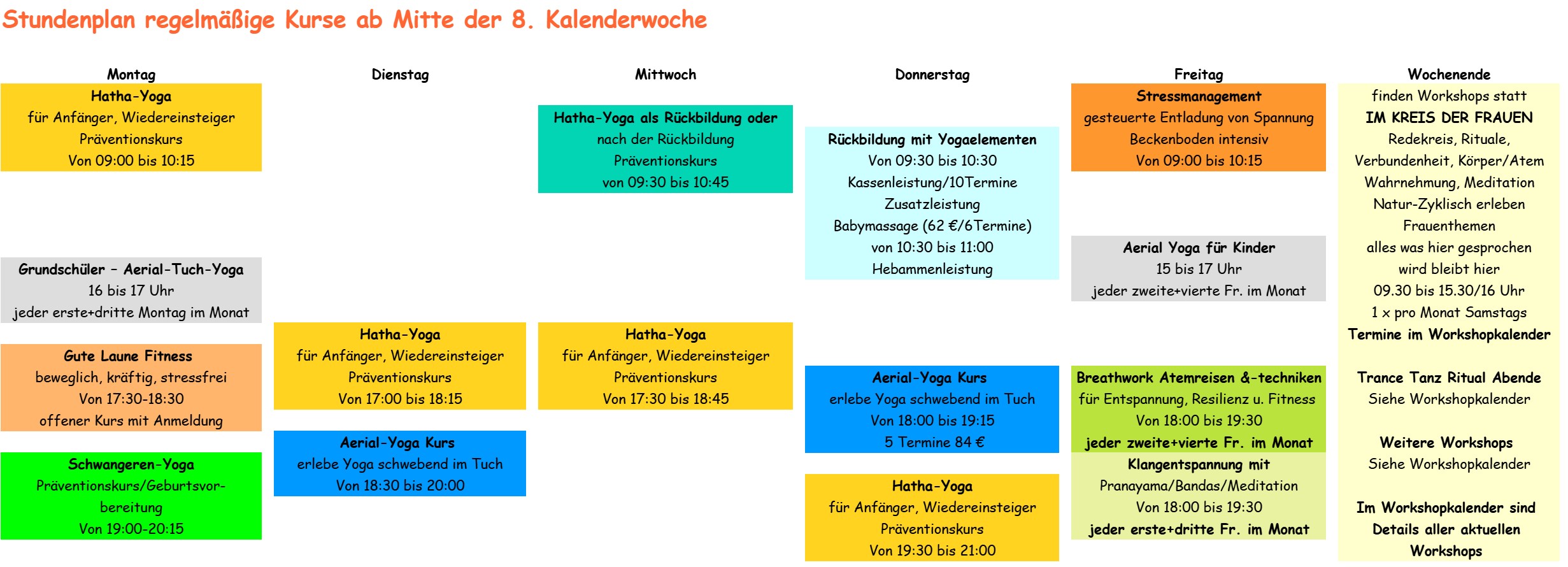 Unten siehst du auf einen Blick alle Kurse, die regelmäßig stattfinden.